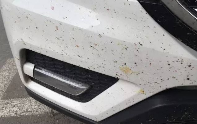 第一時(shí)間用濕抹布/濕巾把車頭、玻璃上的蟲子擦拭一遍,一天內(nèi)的飛蟲尸體基本都能擦掉。