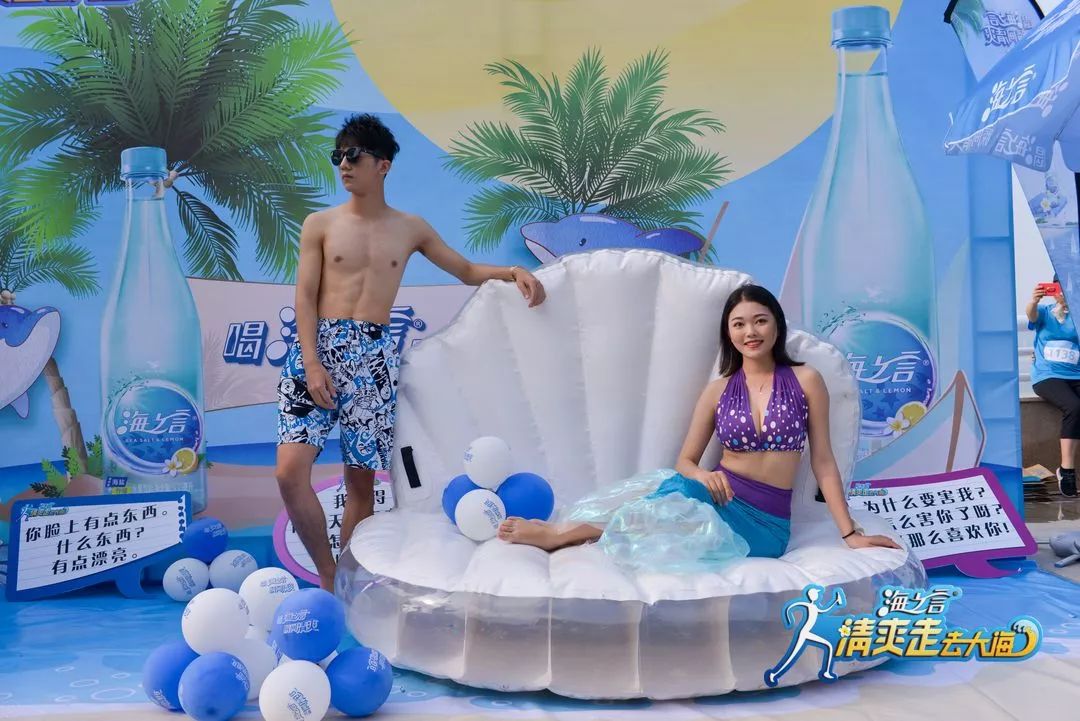 活動現(xiàn)場在海洋主題的裝飾下,清爽、清涼的氣息讓人心曠神怡,現(xiàn)場有美妙音樂的點綴,還增設(shè)了水霧減溫、美女模特,讓你在炎炎夏日感受一回擁抱清爽的健走運動。